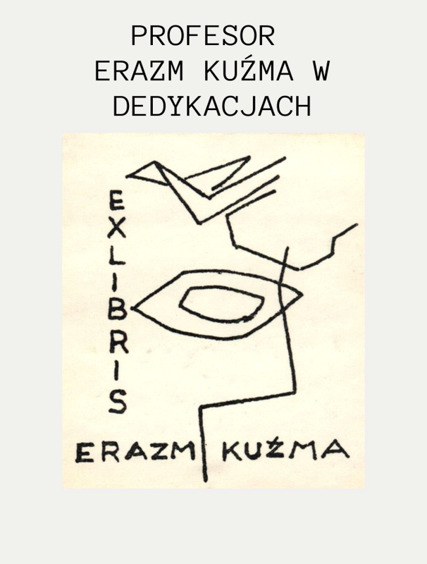 Biblioteka Międzywydziałowa, pragnąc zaprosić do odwiedzenia tego świata i przywołać raz jeszcze obraz twórcy szczecińskiej polonistyki przygotowała wystawę „Profesor Erazm Kuźma w dedykacjach”, prezentującą kilkadziesiąt spośród kilkuset odnalezionych w kolekcji wpisów dedykacyjnych.