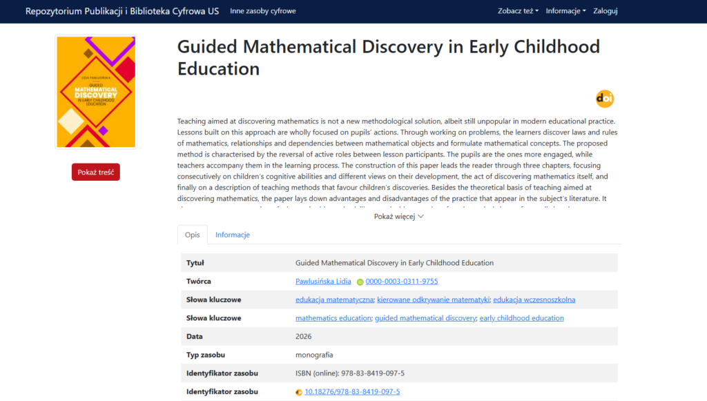We are delighted to share an invaluable resource for educators, researchers, and anyone passionate about early childhood development: the insightful monograph by Lidia Pawlusińska, „Guided Mathematical Discovery in Early Childhood Education.”